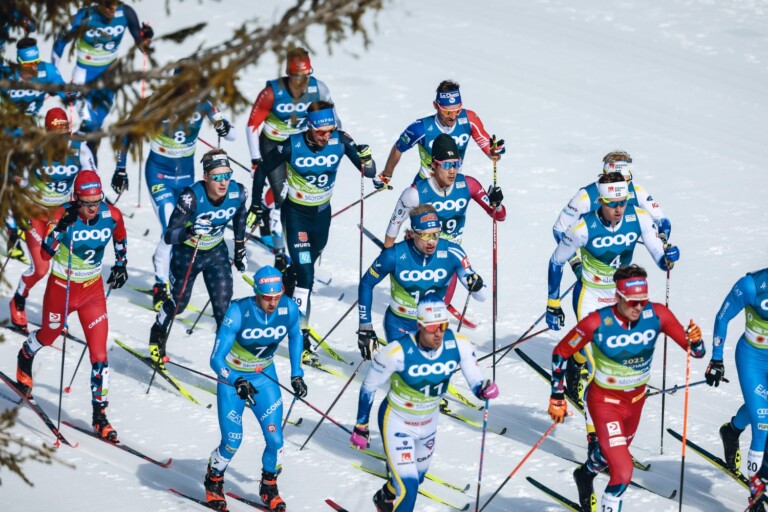Paal Golberg (NOR), Hunter Wonders (USA), Jonas Dobler (GER), Federico Pellegrino (ITA), Iivo Niskanen (FIN), Naoto Baba (JPN), Hugo Lapalus (FRA), William Poromaa (SWE), (l-r) © Modica/NordicFocus