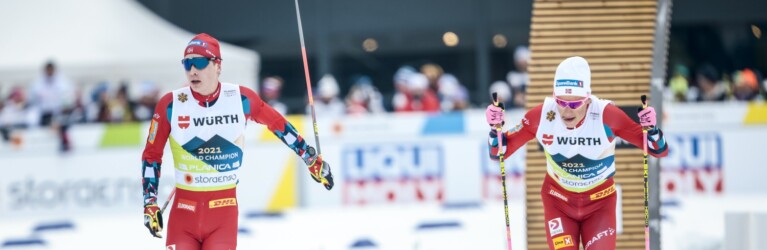 Simen Hegstad Krueger (NOR), Johannes Hoesflot Klaebo (NOR), (l-r) - FIS nordic world ski championships cross-country, relay men, Planica (SLO). www.nordicfocus.com. © Modica/NordicFocus. Every downloaded picture is fee-liable. © Modica/NordicFocus