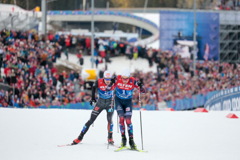 Nordische Kombination: Impressionen vom Team-Wettkampf Vinzenz Geiger (GER), Fabio Obermeyr (AUT), (l-r) © Sandra Volk 1 2 3 4 5 6 7 8 9 10 11 12 13 14 15 16 17 18 19 20 21 22 23 24 25 26 27 © Bilder 1 - 26: Sandra Volk;