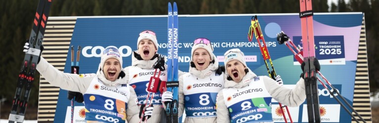 Die vier Norweger Erik Valnes, Martin Løwstrøm Nyenget, Harald Østberg Amundsen und Johannes Høsflot Klæbo wurden ihrer Favoritenrolle voll gerecht und sie holten den fünften Sieg im fünften Rennen der Herren. Immer beteiligt war Klæbo an allen Triumphen vor seinem Heimpublikum. Die Schweizer jubelten über die Silbermedaille…