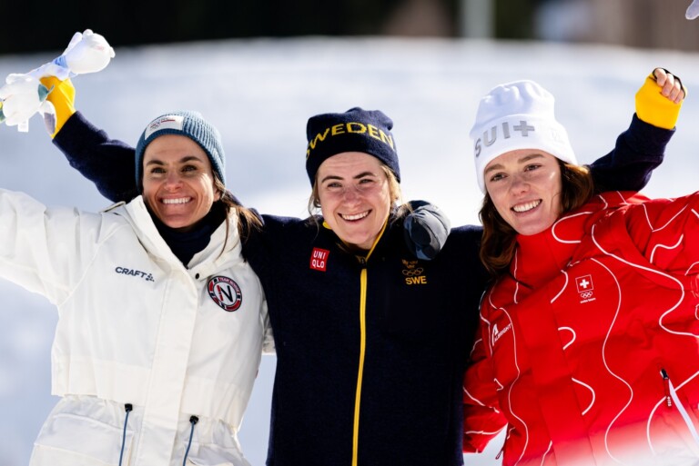 Bildergalerie Olympische Spiele Mailand-Cortina (ITA) 50 Kilometer Damen Heidi Weng (NOR), Ebba Andersson (SWE), Nadja Kaelin (SUI), (l-r) © Vanzetta/NordicFocus 1 2 3 4 © Bilder 1 - 2, 4: Vanzetta/NordicFocus; Bild 3: Barbieri/NordicFocus;