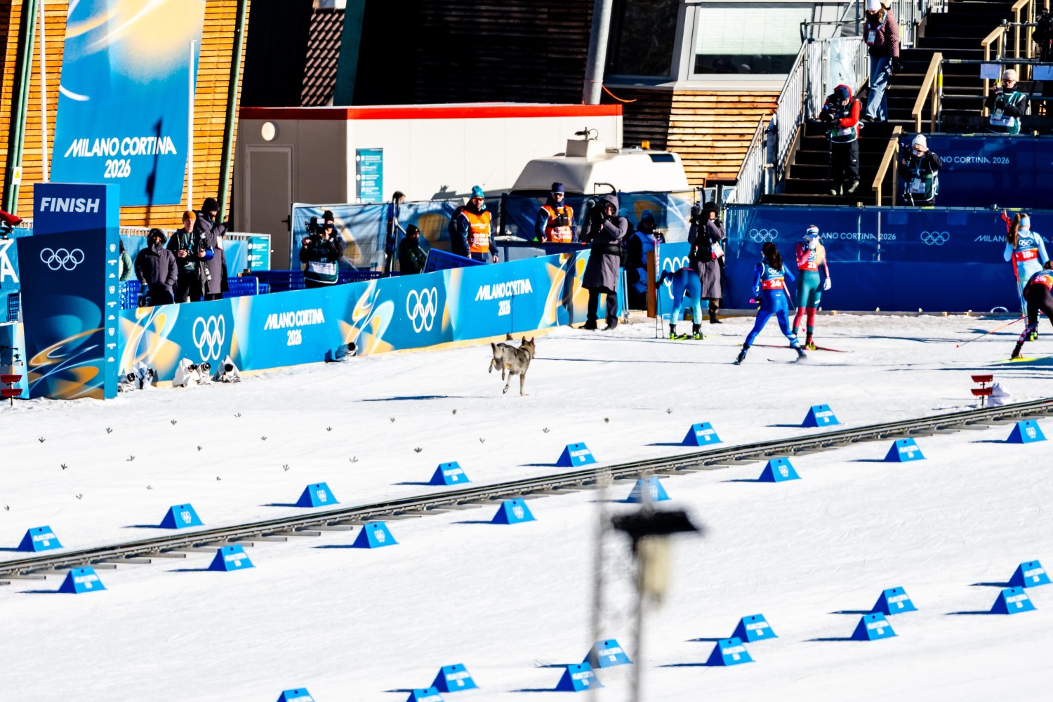 Bildergalerie Olympische Spiele Mailand-Cortina (ITA) Teamsprint Ein freilaufender Hund rennt ins Ziel und löst die Zeit aus © Vanzetta/NordicFocus 1 2 3 4 5 © Bilder 1, 3, 5: Vanzetta/NordicFocus; Bilder 2, 4: Barbieri/NordicFocus;