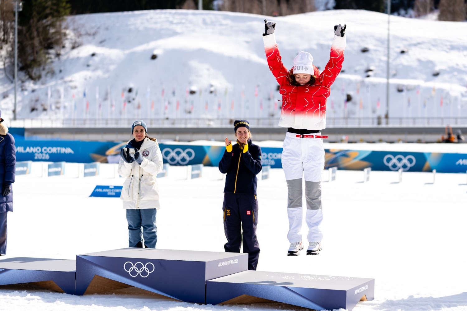 Nadja Kälin lag während des gesamten Rennens unter den besten Zehn und arbeitete sich in der vierten Runde zusammen mit Jessie Diggins an Stadlober, Niskanen und Fosnæs heran. Am Ende trat sie im richtigen Moment an und niemand konnte ihr noch die Medaille streitig machen. Zu ihrem Rennen sagte sie Engadinerin am xc-ski-Mikrofon: „Ich würde sagen, es ist perfekt gelaufen, sonst hätte ich keine Bronzemedaille. Es ist unglaublich. Es ging unglaublich schnell los am Anfang der 50 Kilometer, bei den Frauen ist es ja immer so, aber bei den Männern gestern hat es auch gleich viele aufgestellt. Dann bin ich immer besser reingekommen und dann war ich plötzlich in der Gruppe um Bronze und ich dachte, vielleicht sind Stadlober oder Niskanen, wenn sie jetzt so Tempo drücken, am Ende nicht so stark. Ich habe gewusst, am letzten Anstieg bin ich schon stark und dann probiere ich es direkt.“ Die 22- Jährige begann schon stark mit dem Skiathlon, wo sie noch knapp an den Medaillen vorbeilief, schlug dann im Teamsprint mit Nadine Fähndrich zu und heute wieder. „Es ist unglaublich. Da arbeitet man das ganze Leben und als Kind hat man einen Traum und wenn man älter wird, denkt man, das ist so weit weg und so viele sind besser als man selbst und nun bin ich da und habe zwei Medaillen gewonnen. Das ist unglaublich.“