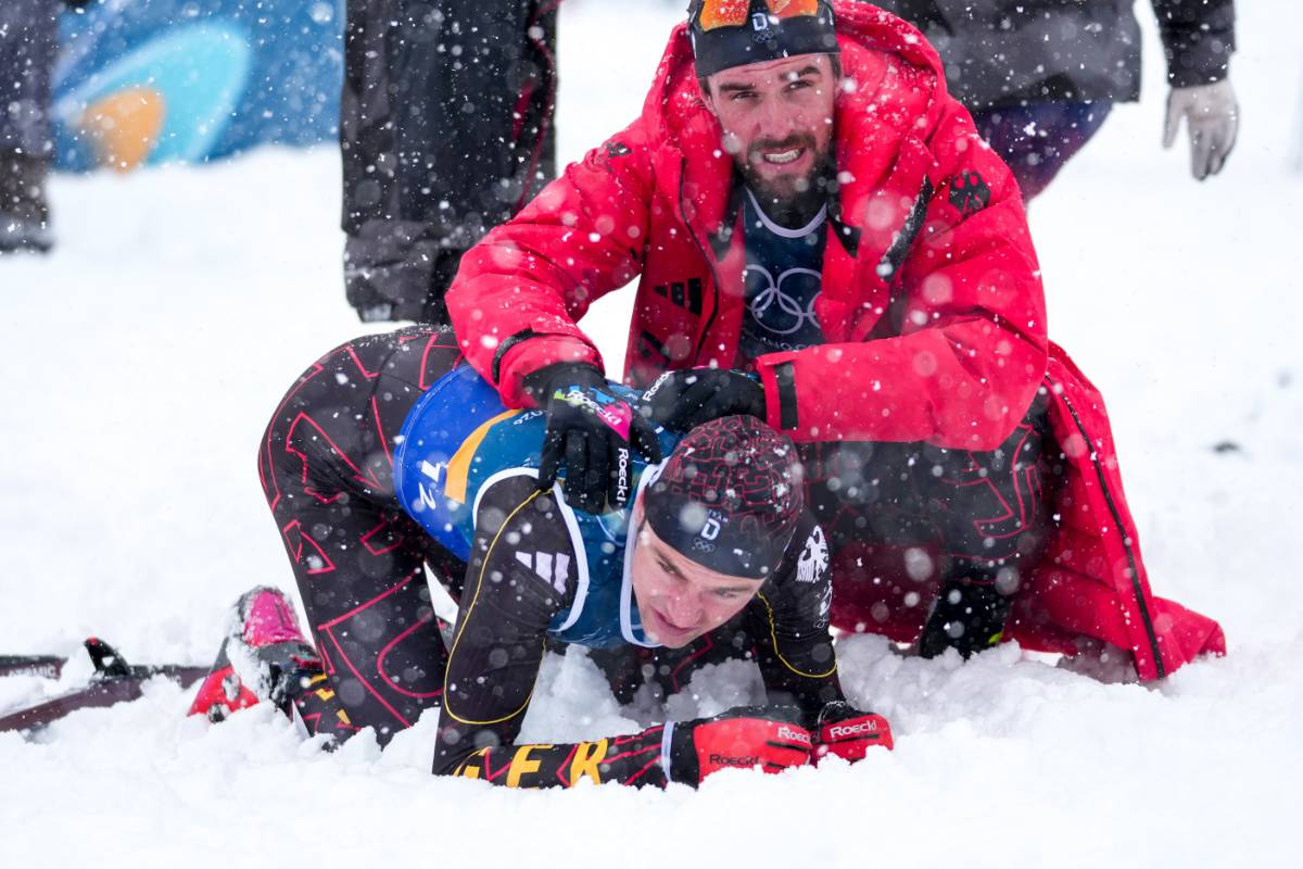 Als Geiger ins Ziel lief und zu Boden sank, wartete Rydzek bereits auf ihn und nahm den Kollegen in die Arme. Geiger war untröstlich: „Ich bin wütend auf mich selber. Ich bin in ein tiefes Loch geraten, mit der Skispitze hängen geblieben und gestürzt. Ich kann mich an kein Rennen erinnern, bei dem mir so etwas passiert ist. Das tut mir sehr leid – auch für Rydzi.“ Der bemühte sich, den Kollegen wieder aufzubauen: „Wir sind ein Team. Wir gewinnen und wir verlieren zusammen. Heute verlieren wir eben, dann muss man das akzeptieren.“