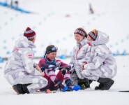 Die zweiten 7,5 Kilometer waren es dann, die schon über Gold entschieden. Für Ebba Andersson war es ein von Anfang bis Ende verkorkstes Rennen. Im ersten Anstieg schlossen Astrid Øyre Slind und Caterina Ganz zu ihr auf und in dem Moment blieb Andersson in einer flachen Kurve mit dem Ski hängen und stürzte. „Wir sind auf allen Eventualitäten vorbereitet“, hatte Frida Karlsson im bei Eurosport eingespielten Interview gesagt – aber es kam ganz anders. Andersson verlor völlig den Rhythmus und konnte die wenigen Sekunden Rückstand nicht aufholen, sie vergrößerten sich sogar leicht. Fortan wirkte die 28-Jährige in jeder Abfahrt extrem verunsichert und wacklig auf den Beinen und so kam es, wie es kommen musste. Im Schneepflug bremste sie in die schwierige Abfahrt zum Stadion an, geriet in eine Rille und überschlug sich. Ein lauter Fluch war zu hören. Dabei brach die Bindung, was die Schwedin aber zuerst gar nicht realisierte. Danach klemmte sie sich unter Schock den kaputten Ski unter den Arm und lief auf einem Bein Richtung Stadion auf der Suche nach einem neuen Ski. Denn Schweden war eben nicht auf alle Eventualitäten vorbereitet – in dieser als Sturzkurve bekannten Abfahrt der Klassikrunde stand niemand. Weder ein Schwede noch ein anderer Betreuer mit Ersatzmaterial. Auf dem Weg zu Andersson stürzte dann auch noch der schwedische Betreuer mit dem Ersatzski, so dass Andersson erst mit 1:18 Minuten Rückstand als Achte zum Wechsel kam. Slind konnte den Vorsprung vorne auf 23 Sekunden ausbauen vor Finnlands Kerttu Niskanen und der wieder sehr stark laufenden Schweizerin Nadja Kälin. Dahinter wechselte Italiens Caterina Ganz, die am Schluss etwas einging mit 34 Sekunden und Österreich nach starker Leistung von Heidi Bucher zusammen mit Rosie Brennan. Katharina Hennig Dotzler hatte das deutsche Team auf sieben nach vorne gelaufen, 20 Sekunden vor Schweden.