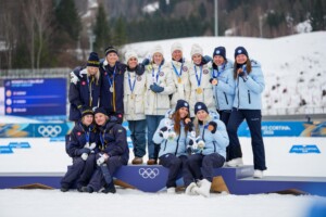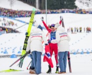 Der Sieg der Norwegerinnen stand durch eine bockstarke Karoline Simpson-Larsen nicht mehr in Frage, so dass Heidi Weng kein zu großes Risiko mehr eingehen musste. „Alle vor mir haben einen sehr guten Job gemacht und wenn du eine Minute Vorsprung hast, dann weißt du, dass die die Abfahrten vorsichtiger fahren kannst. Die konnte ich auf sicher fahren und auf den Füßen bleiben. Dieses Gold ist einfach großartig für uns“, sagte sie im Ziel bei Eurosport. Zuvor hatte sie sich kurz vor der Ziellinie umgedreht und demonstrativ nach den Schwedinnen Ausschau gehalten. Diese Geste kam in Schweden nicht gut an. „Man sollte Respekt zeigen“, sagte die nicht aufgestellte Emma Ribom. Astrid Øyre Slind hatte schon früh mit Gold geliebäugelt, obwohl sie Anderssons Probleme nicht mitbekommen hatte: „Ich habe das gar nicht mitbekommen. Als ich durchs Stadion kam, habe ich gemerkt, dass wir schon einen guten Vorsprung haben, so dass ich schon da auf Gold gehofft habe. Wir sind so stolz über diesen Sieg.“ Silber holten sich noch die Schwedinnen, aber Freude kam im Ziel überhaupt nicht auf. Vor allem die Minen von Andersson und Karlsson wirkten bei den Umarmungen wie versteinert. „Es fühlt sich gut an, die anderen um mich zu haben. An einem Tag wie diesem unterstützen wir uns – egal was passiert. Aber heute gibt es nicht viel, worüber man sich freuen kann“, sagte Andersson im Gespräch mit der schwedischen Presse. Jonna Sundling hatte als Schlussläuferin einen guten Job gemacht, auch wenn es nicht mehr zum Sprint kam. Sie lief gegen Ende der ersten Runde an Jasmi Joensuu heran und erholte sich dann hinter der Finnin. In der zweiten Runde ging sie dann im Anstieg vorbei und riss sofort eine Lücke. Jasmi Joensuu bekam von einem Betreuer aber sofort „Daumen hoch“ gezeigt, so dass sie wusste, sie muss nicht in Panik verfallen. Der Abstand auf die Verfolger betrug zu diesem Zeitpunkt 40 Sekunden. So brachte sie jubelnd die Medaille nach Hause. „Wir haben so sehr darauf gewartet. Wir haben so hart gearbeitet und wir hatten alle unsere Probleme. Heute haben wir als Team gezeigt, dass wir es auf Podium schaffen können“, freute sich Joensuu und Startläuferin Johanna Matintalo meinte: „Wir haben sehr gut als Team agiert. Jede hat eine tolle Leistung gezeigt. Dafür sind wir mit Bronze belohnt worden.“