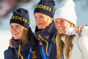 Das größte Problem im heutigen Rennen war erstmal, sich nicht zu verlaufen, denn die zehn Kilometer wurden auf zwei unterschiedlichen 3,75 Kilometer-Runden ausgetragen plus einer 2,5 Kilometer-Runde, die sich teilweise überschneiden. Letztlich war es eine Isländerin, die aus dem Rennen genommen wurde, nachdem sie in der falschen Runde unterwegs gewesen war. Mit +6°C war es wieder sehr warm, aber nach der Qual der Kombinierer, die die Beine sehr hoch heben mussten in den Anstiegen, war die Strecke gesalzen worden, was die Bedingungen deutlich verbesserte. Auch heute war wieder Frida Karlsson das Maß aller Dinge. Nach der ersten 3,75 Kilometer-Runde in der Nähe der Häuser von Lago drehte die 26-Jährige richtig auf und baute ihren Vorsprung kontinuierlich aus. Als die vor ihr gestartete Ebba Andersson die Ziellinie überquerte, skatete Frida Karlsson schon über die Welle und nahm die Zielgerade in Angriff. Die Schwedin gewann mit dem historisch zweitgrößten Vorsprung über zehn Kilometer bei Olympischen Spielen mit 46,6 Sekunden Vorsprung – nur Lydia Wideman (FIN) war bei den Olympischen Spielen 1952 in Oslo mit 59 Sekunden Vorsprung noch überlegener. „Das ist verrückt. Ich war so aufgeregt vor dem Rennen. Aber es hat einfach so viel Spaß gemacht. Mein Team hat mir so viel Energie gegeben und mich inspiriert und die Zuschauer haben mich zu Gold getragen. Ich bin so dankbar für alle Menschen um mich herum, die mich immer unterstützt haben. Es war ein langer Weg bis hierher und ich habe mir vorgenommen, es zu genießen wie das Langlaufen als Kind und ich bin so froh, dass alles so aufgegangen ist“, sagte die Doppel-Olympiasiegerin im ZDF. Bei Eurosport sagte sie zudem auf die gesalzene Strecke angesprochen: „Ich mag es lieber, wenn es tiefer ist, weil es dann für alle anderen schwerer ist.“ Ihre Teamkollegin sagte nach der zweiten Silbermedaille: „Ich denke, ich bin mit einem guten Tempo gestartet. Aber in der zweiten Runde haderte ich mit meiner Technik und dann habe ich einfach versucht, noch einmal alles zu geben, was möglich ist. Das ist ein unglaublicher Abstand. Frida ist in einer anderen Welt. Ich bin einfach beeindruckt.“