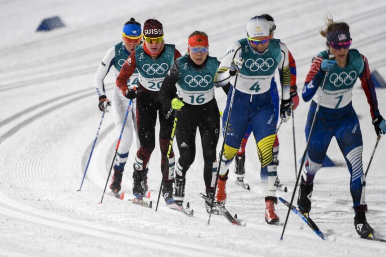 Kerttu Niskanen (FIN), Nadine Faehndrich (SUI), Sandra Ringwald (GER), Hanna Falk (SWE), Jessie Diggins (USA) (l-r) © Thibaut/NordicFocus