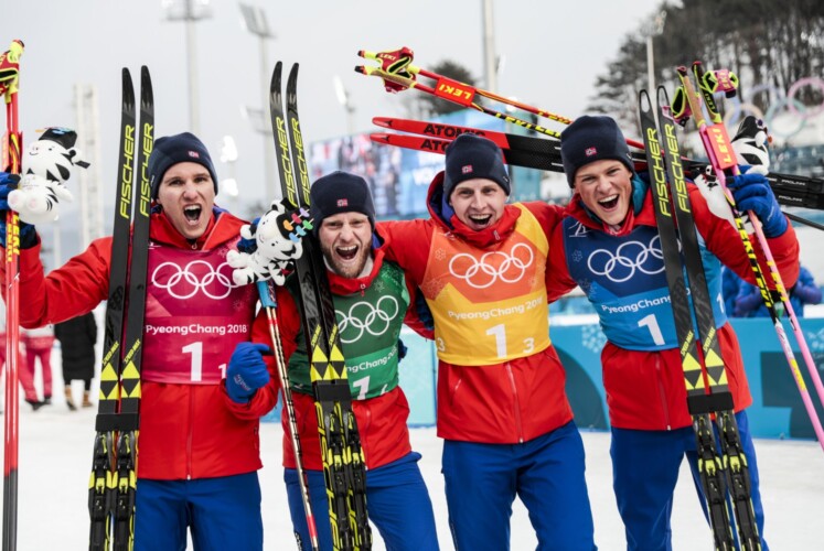 Didrik Tønseth, Martin Johnsrud Sundby, Simen Hegstad Krüger und Johannes Høsflot Klæbo sind Olympiasieger in der 4×10 Kilometer-Staffel. Silber holten sich die Russen vor den Franzosen. Rang sechs ging wie bei den Damen an das deutsche Quartett.
