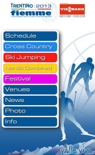 Neben einer Begeisterung, die sich sofort auf jeden Besucher überträgt, bietet Val di Fiemme zudem einen Top-Service. Ein Bestandteil ist die neue App Trentino Fiemme 2013 für iOS- oder Android-Betriebssysteme. Ob Tipps für Unterkünfte, Restaurants oder lohnende Ausflugsziele, Wetterbericht, freie Parkplätze, Daten zu den Athleten oder natürlich aktuelle Ergebnisse und Bilder – mit der App sind Besucher zu jeder Zeit bestens informiert. Diese kann kostenlos heruntergeladen werden unter www.fiemme2013.com.