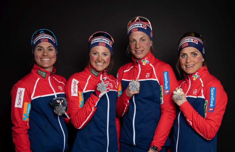 Heidi Weng, Ingvild Flugstad Oestberg, Astrid Uhenholdt Jacobsen und Therese Johaug (NOR) gewinnen Silber mit der Staffel © GEPA pictures