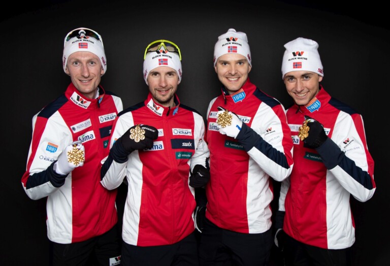 Espen Bjoernstad, Jan Schmid, Joergen Graabak und Jarl Magnus Riiber (NOR) gewinnen Gold im Teamwettkampf © GEPA pictures