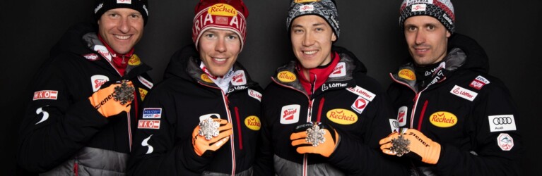 Bernhard Gruber, Franz Josef Rehrl, Mario Seidl und Lukas Klapfer (AUT) gewinnen Bronze im Teamwettkampf © GEPA pictures