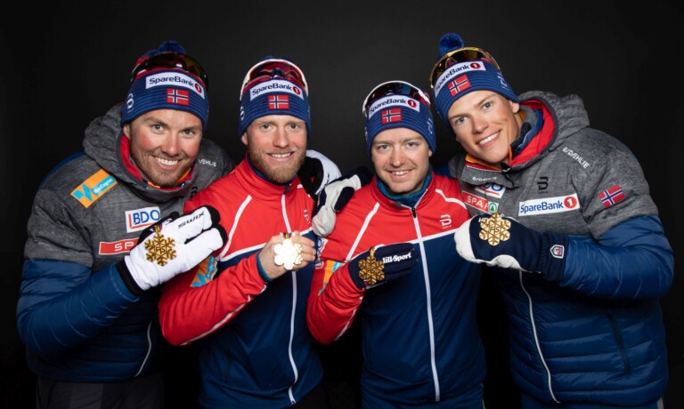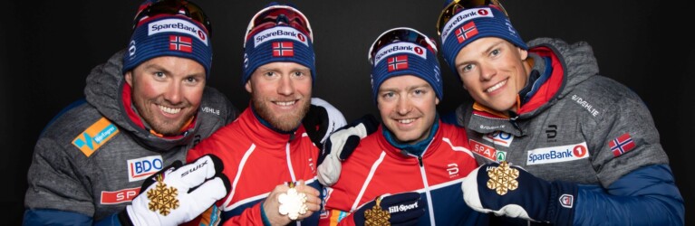 Emil Iversen, Martin Johnsrud Sundby, Sjur Roethe und Johannes Hoesflot Klaebo (NOR) gewinnen Gold mit der Staffel © GEPA pictures