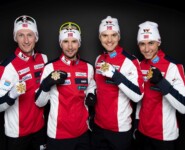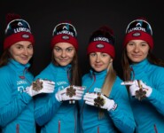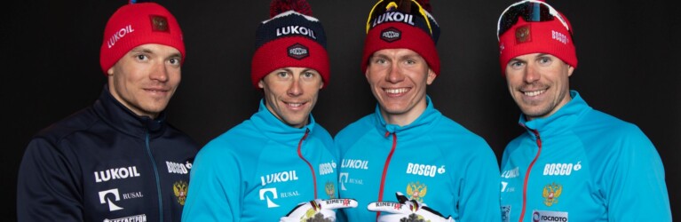 Andrey Larkov, Alexander Bessmertnykh, Alexander Bolshunov und Sergey Ustiugov (RUS) gewinnen Silber mit der Staffel © GEPA pictures