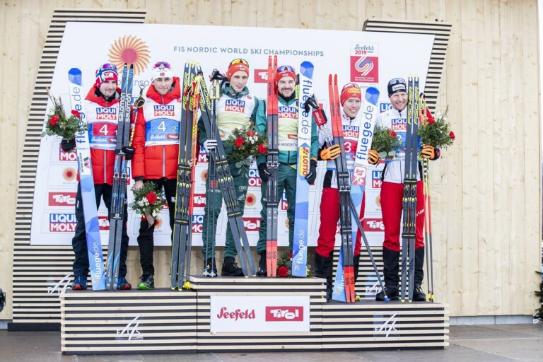 NK WM Seefeld: Bildergalerie Teamsprint Jan Schmid (NOR), Jarl Magnus Riiber (NOR), Eric Frenzel (GER), Fabian Riessle (GER), Franz-Josef Rehrl (AUT), Bernhard Gruber (AUT), (l-r) © Modica/NordicFocus 1 2 3 4 5 6 7 8 9 10 11 12 13 14 15 16 17 18 © Bilder 1, 3, 5, 16 - 18: THIBAUT/NordicFocus; Bilder 2, 4, 6 - 15: Modica/NordicFocus;