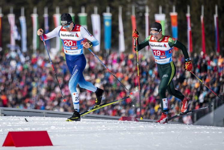 Die Techniker haben wirklich alles gegeben, die haben viel getestet, aber leider haben sich die Bedingungen zwischen Semifinale und Finale verändert. Wir hatten im Semifinale wirklich super Ski dran, sowohl Stieg als auch in der Abfahrt, da waren wir auch dabei. Jetzt im Finale war es ein bisschen zu viel Stieg, wir hatten so viel Grip, dass wir da wirklich nicht mitfahren konnten in der Abfahrt und das macht auf der Runde oder im Teamsprint wirklich viel aus, wenn man da im Pulk mitfahren kann und sich ransaugen kann und vielleicht aus dem Windschatten raus. Das war heute leider nicht auf unserer Seite, wir waren gut drauf, es hat auch Bock gemacht, aber das war dann einfach zu viel Kraftaufwand, um wieder hinzulaufen und deswegen war jetzt nicht mehr drin.