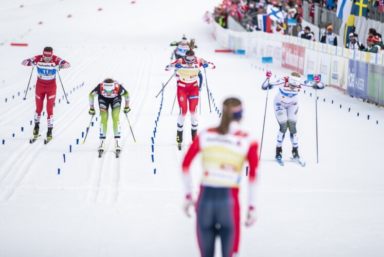 Im Finale der Damen war das Tempo meist sehr hoch, so dass nach und nach Teams dem Tempo nicht mehr folgen konnten. Zur Hälfte des Rennens hielten noch sechs Teams vorne mit, auf der letzten Runde kämpften dann noch vier Duos um die Medaillen. Norwegen erhöhte durch Maiken Caspersen Falla das Tempo gefolgt von Maja Dahlqvist und Yulia Belorukova sowie Anamarija Lampic, die sich in die Spur vor der Russin drängte, so dass die Russin einen kleinen Abstand nach der Abfahrt hatte. Zu dritt nebeneinander starteten die Damen in den letzten Anstieg und die Slowenin griff an, Falla konterte. Die Slowenin war in der letzten Kurve ganz außen, so dass Falla vor Dahlqvist in die finale Abfahrt ging. Auf der Zielgeraden kämpften dann alle drei Seite an Seite, während die Russin versuchte, doch noch irgendwo eine Lücke zu finden. Maja Dahlqvist konnte den Windschatten für sich nutzen und triumphierte zusammen mit einer ebenfalls überglücklichen Stina Nilsson. „‚Das fühlt sich toll an“, freute sich Maja Dahlqvist und fügte hinzu: „Es war sehr eng, aber ich habe mich sehr stark gefühlt.“ Stina Nilsson ergänzte: „Ich auch, ich mag die Strecke sehr, weil sie sehr schnell ist und man muss fokussiert bleiben und kann sich nicht ausruhen. Wir haben uns vorher überlegt, wann wir wo attackieren und das hat gut funktioniert.“ Gefeiert wird heute Abend mit dem schwedischen König – ein weiteres Highlight für die Schwedinnen. Silber ging an die Sloweninnen Katja Visnar und Anamarija Lampic, die den ersten großen Erfolg unter der Leitung ihres neuen Trainers Ola Vigen Hattestad feierten. Maiken Caspersen Falla brach wie so oft zu Beginn dieser Saison im Zielsprint ein und holte zusammen mit Ingvild Flugstad Østberg, die heute nach dem anstrengenden Skiathlon auch nicht so stark wirkte, nur Bronze. Die Russinnen Natalia Nepryaeva und Yulia Belorukova gingen leer aus. Sadie Bjornsen und Jessie Diggins wurden Fünfte vor dem deutschen Duo, den Finninnen Kyllönen/Pärmäkoski, die kurzfristig Kerttu Niskanen ersetzen mussten, und den Schweizerinnen. Laurien van der Graaff und Nadine Fähndrich konnten nach einem guten Halbfinale im Finale nicht mehr genügend Kräfte mobilisieren, um mit den Besten mitzuhalten und verloren Mitte des Rennens den Anschluss.