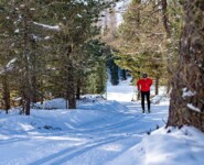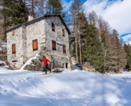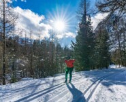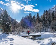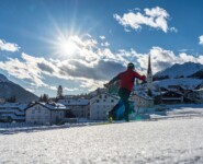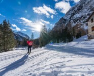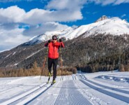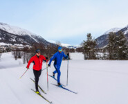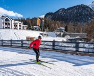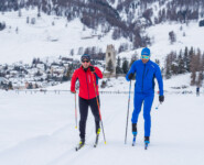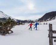 Diese führt uns vorbei am Langlaufzentrum von Celerina wieder zurück zu unserem Ausgangspunkt, wo ich mich von Adriano verabschiede. Er muss weiter, um andere Streckenabschnitte zu kontrollieren. Ich checke erstmal in meinem Nordic Hotel ein, genieße die Vorzüge für Skilangläufer und lasse es mir gut gehen, bevor ich am nächsten Tag die Schleife ins Val Roseg in Angriff nehme. Vom Startort Pontresina laufe ich auf der Rennloipe vorbei am wohl kleinsten Biathlonschießstand der Welt und weiter in das malerische Hochtal. Die Sonne lacht und es macht richtig Spaß, das wellige Gelände mit dem einen oder anderen Anstieg zu bewältigen. Die Loipe präsentiert sich wie gemalt, die Spurgerätefahrer verstehen eben ihr Handwerk, das man in der gesamten Region bestaunen kann. Schließlich komme ich an der Wende an, die sich an einem alten Steinhaus und einer Brücke über den Ova da Roseg Bach befindet. Von hier aus geht es durchweg leicht fallend am Bach entlang mit Highspeed zurück nach Pontresina.