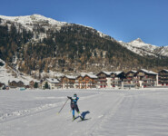 Es ist noch früh im Winter und viele Langläufer sind derzeit auf Schneesuche. Ich habe ihn gefunden und mich ins Goms begeben. Das Hochtal im Schweizer Kanton Wallis kann schon mit knapp 30 Kilometern an gespurten Loipen aufwarten. Eingebucht habe ich mich im Hotel Furka direkt in Oberwald und nur unweit des Autoverlad-Bahnhofs, an dem im Winter sowohl Gäste als auch Einheimische ankommen. Nur 20 Meter sind es von meiner Unterkunft bis zur Loipe und so lasse ich es mir nicht nehmen, direkt auf eine erste Runde zu starten.