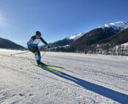 Direkt vor dem Stadiongebäude im Nordischen Zentrum nehme ich Aufstellung. Als in meinem Kopf der Startschuss ertönt, starte ich die Aufzeichnung auf meiner Uhr und laufe los. Über kleinere Wellen geht es zunächst zur einzigen Straßenquerung, an der ich meine Ski ausziehen muss. Wobei, eigentlich nehme ich nur einen Ski in die Hand und lasse den anderen am Fuß. Einbeinig hüpfe ich über die Straße und bin blitzschnell wieder in der Bindung. Weiter geht’s über die flachen Wiesen und entlang der Rotten bis nach Obergesteln. Dort führt die Loipe wie fast überall im Goms durch Ausläufer des Ortes und vorbei am Bahnhof. Jetzt beginnt mein Endspurt und nach 14:39 Minuten sowie 4,9 Kilometern überquere ich die imaginäre Ziellinie am Loipenhäuschen in Oberwald. Ich stütze mich auf meine Stöcke und muss erstmal durchschnaufen. Das war mal wieder ein echter Durchputzer für meine Lungen und meine Pumpe! Am Abend dann beim Eintragen in die Rangliste die Überraschung: Ich bin der derzeit Führende! 2024 war noch niemand schneller. Das hätte ich nicht erwartet. Am Ende ist es aber sowieso egal, welche Platzierung rausgesprungen ist. Hauptsache ich habe mich wieder mal ein bisschen herausgefordert.