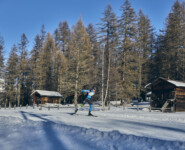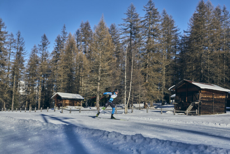 Die Bedingungen sind top, die Rottenloipe ist fest und schnell, aber auch griffig genug. So macht Langlaufen Spaß! Ich laufe die ersten Kilometer bis Ulrichen und weiter ins Nordische Zentrum. Dort ist gerade ein Swiss Cup Wochenende zu Ende gegangen und es werden gerade die Banner und der Zielbogen abgebaut. Hier ist der Startort für alle drei Gommer Challenges, die schon seit mehreren Jahren vom Tourismusverband veranstaltet werden. Die drei Challenges sind unterschiedlich lang, bieten verschiedene Streckencharakteristika und können individuell absolviert werden. Das heißt, man nutzt entweder mit seinem Smartphone die Stopfunktion auf der Webseite, die Strava-Plattform oder zeichnet die Aktivität mit seiner GPS-Uhr auf. Im Anschluss werden die Daten übermittelt und man erscheint in der Rangliste.