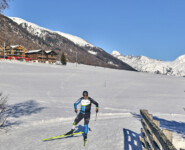 Am nächsten Morgen treffe ich mich mit Sämi aus der Marketingabteilung des Tourismusverbandes. Er war schon Loipenfahrer und Forstarbeiter, ist jetzt aber unter anderem für die Challenges zuständig. Gemeinsam laufen wir Teile der längeren Challenge ab, die vom Nordischen Zentrum bis nach Niederwald führt. In dieser Richtung fällt das Tal leicht ab und es sind hohe Geschwindigkeiten möglich. Es geht auf der Rottenloipe vorbei an Münster bis nach Biel, wo wir am Bahnhof umdrehen und zurücklaufen. Leider sind die letzten beiden Kilometer der Challenge noch nicht gespurt, weswegen wir uns nicht in die Rangliste eintragen können. Aber ich brauche ja auch noch Ziele für meinen nächsten Besuch im Goms.
