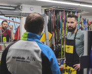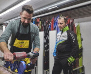 Preise gibt es natürlich auch zu gewinnen. Diese gehen jedoch nicht an die Schnellste/ den Schnellsten, sondern Denjenigen, der die jeweilige Strecke am häufigsten absolviert. Darauf darf ich mir zwar bei meinem Kurzbesuch keine Hoffnungen machen, aber ich will auf jeden Fall eine gute Zeit laufen und mal so richtig Gas geben. Damit das gelingt, schaue ich noch bei Sport Hallenbarter vorbei. Das Traditionssportgeschäft in Obergesteln wird seit dieser Saison neu von Benjamin Weger geführt. Der Ex-Weltklasse Biathlet tritt damit die Nachfolge der Hallenbarter Familie an, die ein Sportgeschäft mit Skischule und Vasa-Bar aufgebaut hat. Benjamin vertraue ich meine Rennski an und er verpasst ihnen das passende Wachs. Beim Sportler-Tee plaudern wir noch über das Langlaufen, ehe ich mich auf den Weg zum Start mache.