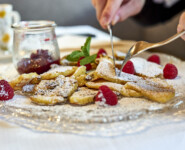 Am letzten Tag unseres Kurztrips holt uns Barbara ab. Sie ist ehemalige italienische Meisterin im Biathlon, Fitnesstrainerin und erfolgreiche Skimarathonläuferin. Das wird heute sicher anstrengend denken wir uns da nur. 😉 Barbara will uns die schönsten Plätze ihrer Heimat zeigen, dem schönsten Tal der Alpen wie sie sagt. Dass diese Einstufung durchaus seine Berechtigung hat, bekommen wir direkt vor Augen geführt. Wieder starten wir an der Talschlusshütte und drehen eine Runde oberhalb von St. Magdalena. Die Sonne zaubert uns trotz klirrender Kälte bei jedem Schritt ein Lächeln auf die Lippen und wir geben schon wieder viel zu viel Gas. So bleibt uns noch genug Zeit, einen Teil der Gsieser Tal Lauf Strecke zu erkunden. Von Pichl laufen wir bis zum Binta Pub, einem modern rustikal eingerichteten Restaurant und Cafè, wo wir uns zum Aufwärmen eine heiße Schokolade gönnen. Für das Mittagessen geht es dann aber noch ein paar Kilometer weiter bis zu Barbaras Arbeitgeber, dem Hotel Quelle. Im Fünf-Sterne-Haus wartet eine ganz besondere Spezialität auf uns: Gsieser Taler Ochse. Jedes Jahr vor Ostern findet eine große Versteigerung dieser Tiere statt, die dabei Bestpreise erzielen. Das Stück auf unserem Teller ist jedenfalls jeden Cent wert.