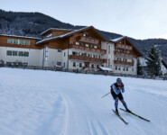 Man kennt die beiden benachbarten Täler, sei es vom Biathlon Weltcup in Antholz oder dem Gsieser Tal Lauf. Aber wie steht es ganz allgemein um die Langlaufbedingungen abseits der beiden Großereignisse? Das zu erkunden, haben wir uns Mitte Dezember auf den Weg nach Südtirol gemacht. Einquartiert haben wir uns im Alpine Nature Hotel Stoll in Pichl im Gsieser Tal. Das Vier-Sterne-Haus hat alles zu bieten, was man für einen entspannten Langlaufurlaub braucht. Bei unserer Ankunft am späten Nachmittag wollen wir eigentlich sofort noch raus auf die Loipe, doch wir bleiben zunächst am Kuchenbuffet hängen. Die Auswahl ist groß und so ist es bereits dunkel, als wir das Hotel verlassen. Mit dem Auto geht es ein paar Kilometer Tal einwärts bis zur Talschlusshütte. Dort erwartet uns, fast schon etwas versteckt, eine Nachtloipe von knapp zwei Kilometern Länge. Es dauert nicht lange und die Kuchen-Kalorien sind wieder verbraucht. Für uns ist es dann auch an der Zeit, ins Hotel zurückzukehren, um das Abendessen nicht zu verpassen. Schließlich wäre das ein wahrer Frevel gewesen, auf diese köstlichen drei Gänge plus Vorspeisenbuffet zu verzichten. So gestärkt sind wir bereit für den nächsten Tag.