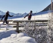 Eigentlich wäre jetzt Mittagspause angesagt, aber uns zieht es noch in Richtung Staller Sattel. Gerhard zeigt uns noch den Einstieg in die enge Passstraße, die im Winter nicht geräumt wird, und macht sich dann auf den Rückweg. Von hier aus finden wir selbst den Weg, es gibt ja nur einen. Eigentlich als Rodelstrecke präpariert, eignet sich die Strecke auch perfekt zum Skaten und so schrauben wir uns über Serpentinen und leicht ansteigende Geraden bis auf über 2.000 Meter Höhe. Eigentlich hätten wir von dort aus noch die Höhenloipe des anschließenden Defereggentals nutzen können. Sie ist frisch präpariert und lacht uns förmlich an. Aber der Hunger treibt uns dann doch zurück ins Antholzertal. Im Seehaus lassen wir uns den Kaiserschmarrn so richtig schmecken und begeben uns dann auf den Rückweg ins Gsieser Tal. Dort lassen wir den Tag im Wellness-Bereich unseres Hotels ausklingen. Einfach herrlich!