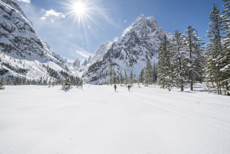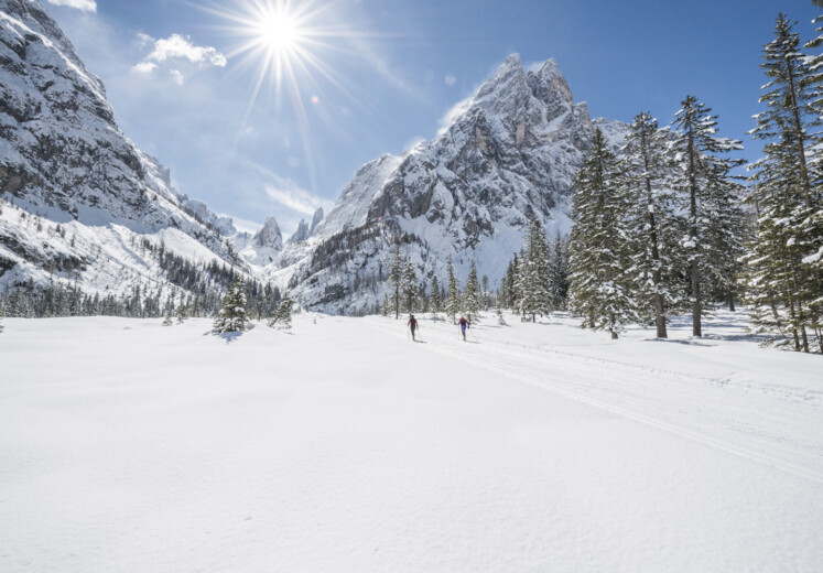 Stolze 200 Loipenkilometer verbinden auf einer Höhe zwischen 1.130 bis 2.200 Meter alle fünf Ortschaften der Dolomitenregion Drei Zinnen. Romantiker laufen durch das Pragser Tal bis zum sagenumwobenen Pragser Wildsee oder durch das malerische Fischleintal. Imposant sind das Hochplateau der Plätzwiese und das Höhlensteintal mit Blick auf die Drei Zinnen. Eine Herausforderung ist die Tour de Ski-Strecke von Toblach nach Cortina d’Ampezzo.