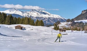 Leider ist der Nordic Skills Park, den ich mir für heute vorgenommen habe, aufgrund der Schneebedingungen noch nicht fertiggestellt. In wenigen Tagen soll es in Fastatsch, in Parpan und in der Roland Arena (dem Biathlonstadion von Lenzerheide) Hindernisse, Slalomstangen und Schanzen geben, mit denen man seine Fähigkeiten auf Langlaufski überprüfen und verbessern kann. Hier in Fastatsch, wohin ich über einen längeren Anstieg vom See aus gelange, finde ich trotzdem genug Übungsmöglichkeiten, um meine „Skills“ zu verbessern. Wie in einer Achterbahn führt die Loipe hier über Wellen und um Kurven, die mein Können fordern. Auch die Informationstafel steht schon. Dort kann man für das Absolvieren des Nordic Skills Parks Punkte sammeln, die wiederum für Urlaubserlebnisse eingelöst werden können.