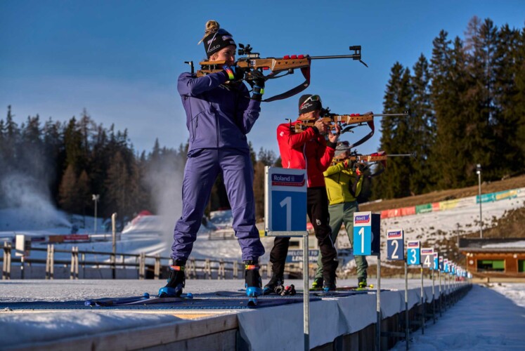 Ich stehe neben Ex-Weltcup Biathletin Elisa Gasparin am Schießstand und versuche, meinen Puls unter Kontrolle zu bekommen. Mist, ein Fehler! Aber auch vier Treffer. Gar nicht so schlecht für den Anfang.