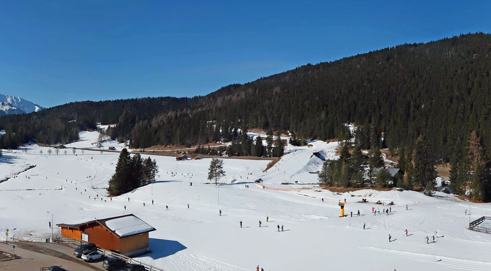 Auch in Italien herrschen weiterhin traumhafte Langlaufbedingungen. Auf dem Passo Lavaze oberhalb des Val di Fiemme wird weiterhin das gesamte Loipennetz präpariert. Im Tal musste die Marcialonga-Loipe inzwischen geschlossen werden. Vom Gsiesertal über Toblach bis Innichen und von Toblach bis Cimabanche erwarten euch fast das komplette Loipennetz und über 250 Loipenkilometer. Das Tauferer Ahrntal bietet weiterhin 42 Kilometern. Auf der Seiser Alm werden 107 Kilometer gespurt. Aber auch Martelltal, Antholzertal, Schlinig, Langtaufers und Sulden bieten zahlreiche offene Loipen.