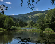Weiter geht es vorbei an der sprudelnden Quelle des Ursprungbaches und über Zeutschach hinein in den zweiten und letzten langen Anstieg des Tages. Hier ist nochmal Kraft und Kondition gefordert, ehe es auf schneller Schotterpiste und vorbei an den Skipisten von Grebenzen hinunter nach St. Lambrecht geht. Vorbei am Benediktinerkloster und am Sportgeschäft von Wolfgang führt uns die Route nun in Richtung Weirerteich. Beim Blick auf die sanft geschwungenen Wiesen zwischen den Ausläufern des Kuhalms und Reiterkogels entstehen vor meinem geistigen Auge direkt Bilder von verschneiten Loipen. Wenig später erreichen wir den Weirerteich. Dort wo sich aktuell Badegäste tummeln und das Stüberl zum Brotzeitmachen einlädt, befindet sich im Winter der Start der beschneiten Weirerteichloipe. Das muss ich mir unbedingt nochmal zur richtigen Jahreszeit anschauen! Nach einer kurzen Rast beim Freizeitwirt zwei Kilometer weiter begeben wir uns in den Endspurt nach Murau. Knapp 60 Kilometer und etwas mehr als drei Stunden Fahrzeit zeigt mein Radcomputer schließlich bei unserer Rückkehr an.