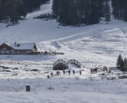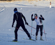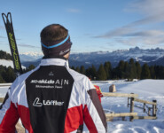 Es ist schon ein gewaltiger Kontrast, der sich einem auf der Anreise zum Passo Lavazè bietet. Unten im Eisacktal grün soweit das Auge reicht. Nur die höchsten Berggipfel glänzen schon weiß. Dann biegen wir an der Ausfahrt Bozen-Nord von der Autobahn ab und es geht über eine zunächst perfekt ausgebaute, später wenig befahrene Straße hinauf zum Pass. Dort ist es zehn Grad kälter und die Schneekanonen haben ganze Arbeit geleistet. Vor unseren Augen breitet sich bei strahlendem Sonnenschein und blauem Himmel ein weißes Winterwunderland aus. 2,5 Kilometer ist die erste Loipe lang und perfekt präpariert. Zudem sind nur wenige Langläufer in dem eher welligen Gelände unterwegs, ideal also für ein Saisonauftakt-Trainingscamp.