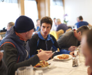 Nach einer ersten Trainingseinheit, die mir ein permanentes Lächeln ins Gesicht zauberte, erwartet uns leckere Pasta zum Mittagessen. Die Camp-Teilnehmer absolvieren am Nachmittag noch eine zweite Einheit, bei der wir beobachten können, wie sich die Trainer wirklich intensiv mit jedem Einzelnen beschäftigen. Mit dem schnellsten deutschen Vasaläufer und Sportwissenschaftler Thomas Freimuth, der Skimarathon-Spezialistin und Sportwissenschaftlerin Sigrun Hannes sowie dem Schweizer Ex-Weltcupathleten Remo Fischer hat Schlickenrieder hier auch ein exklusives Trainerteam am Start, das nicht nur den neuesten Stand der Lauftechnik sondern auch viel Fachwissen rund um das Training im Allgemeinen vermitteln kann. Und so dürfte es den Läufern der schnellen ersten Gruppe nicht schwer fallen, bereits diesen Winter zurück ins Val di Fiemme zu kommen, um an den beiden Breitensport-Highlights Marcialonga und Rampa con I Campioni teilzunehmen.