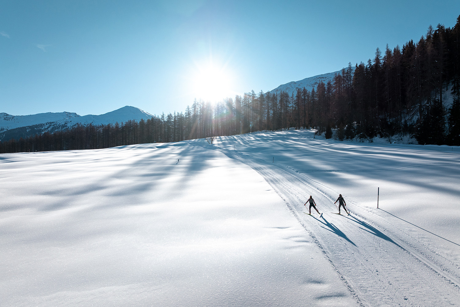 Im Herzen des Naturparks Biosfera Val Müstair finden ruhesuchende Langlaufbegeisterte ein wahres Eldorado. Fernab des Trubels bietet die Region ein Loipennetz mit rund 36 Kilometern, das durch stille Wälder, weite Flächen und kleine Dörfer führt.