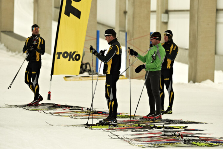 Bevor der eigentliche Test aber starten konnte, mussten natürlich alle Ski präpariert werden. Diese Aufgabe kam, wie bereits in den Jahren zuvor, wieder dem Toko Racingservice zu. Das eingespielte Team, das im Weltcup ständig unter Zeitdruck Höchstleistungen bringen muss, hatte die Sache souverän im Griff. Die völlig identische Präparation aller Testski einer Kategorie ist für die Aussagekraft eines Skitests natürlich überaus wichtig – entsprechend groß muss die Sorgfalt hier sein.