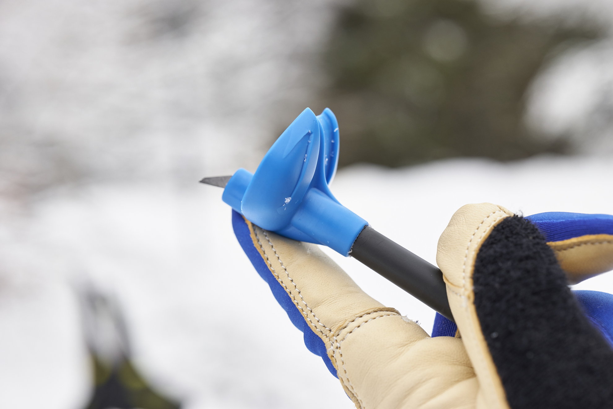 Die breit-ovale Form des kleinen Tellers begünstigt die ideale Kraftübertragung auch bei weicheren Bedingungen, neigt bei richtig soften Schneearten aber zum Rupfen. Auch Salomon vertraut bei den High-End-Stöcken auf das geringe Gewicht von geklebten Spitzen, was im Rennsport durchaus seine Berechtigung hat.