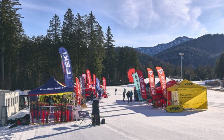 Bei bestem Winterwetter, mit eher frühlingshaften Temperaturen, luden die Hersteller in die Ruhpoldinger Chiemgau-Arena. Dort, wo sonst die Weltcup-Wachser die schnellen Bretter testen durften wir uns gemeinsam mit den wichtigsten Sporthändlern aus dem deutschsprachigen Raum mit dem Material der kommenden Saison beschäftigen. Haltbarkeit (und damit ein gewisser Nachhaltigkeitsfaktor) und Stabilität sind die grundlegenden Themen, die von Schuh über Ski bis zu Stöcken und Handschuhen zukünftig gelebt werden. Auffälligster Trend: ohne mindestens ein Schuhmodell mit BOA-Schnürung kommt künftig kein Hersteller mehr aus, viele weiten das Sortiment nun auf günstigere Klassen aus. Die Verbindung von Schuh zu Ski wird also direkter.
