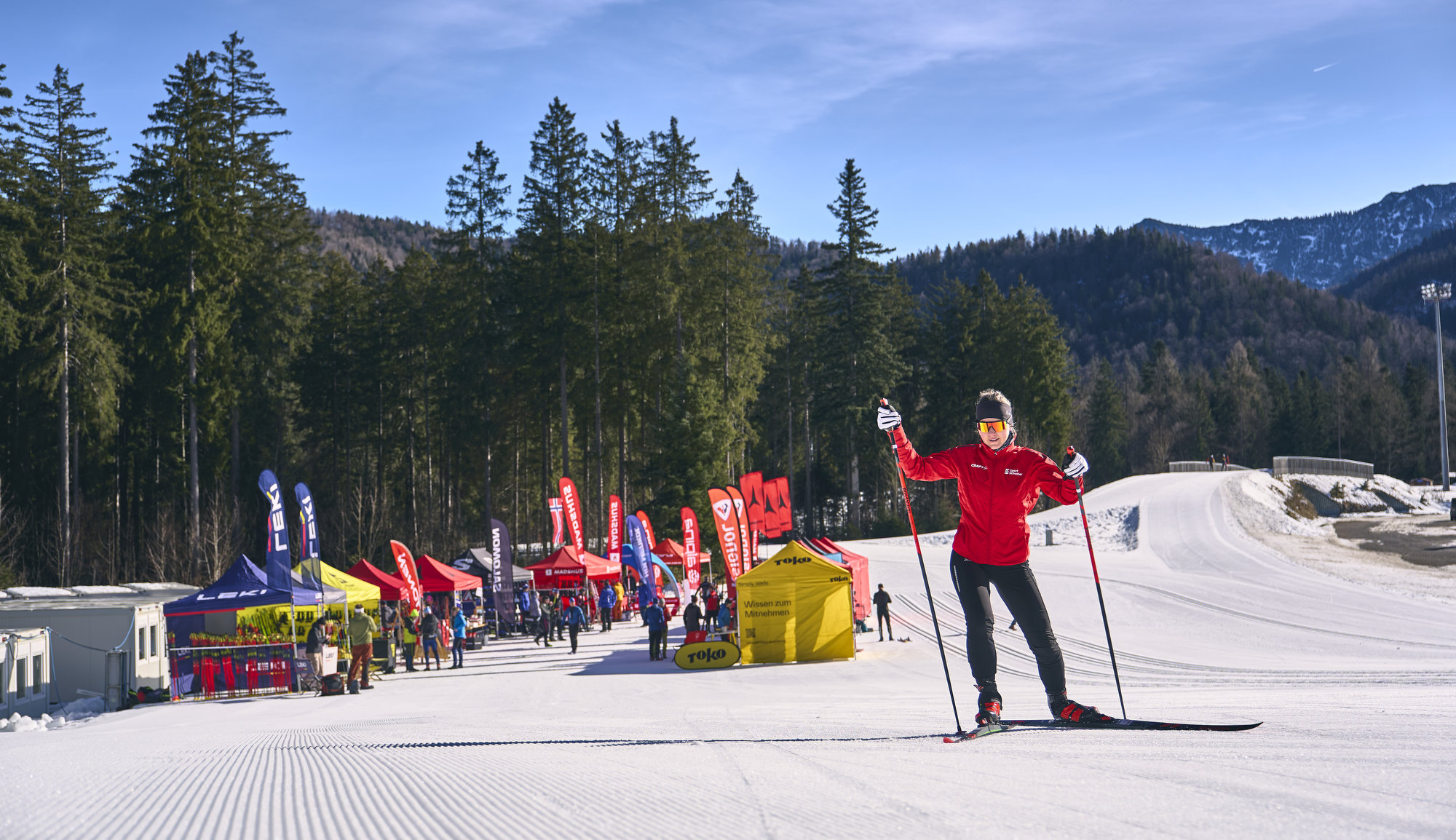 Bei bestem Winterwetter, mit eher frühlingshaften Temperaturen, luden die Hersteller in die Ruhpoldinger Chiemgau-Arena. Dort, wo sonst die Weltcup-Wachser die schnellen Bretter testen durften wir uns gemeinsam mit den wichtigsten Sporthändlern aus dem deutschsprachigen Raum mit dem Material der kommenden Saison beschäftigen. Haltbarkeit (und damit ein gewisser Nachhaltigkeitsfaktor) und Stabilität sind die grundlegenden Themen, die von Schuh über Ski bis zu Stöcken und Handschuhen zukünftig gelebt werden. Auffälligster Trend: ohne mindestens ein Schuhmodell mit BOA-Schnürung kommt künftig kein Hersteller mehr aus, viele weiten das Sortiment nun auf günstigere Klassen aus. Die Verbindung von Schuh zu Ski wird also direkter.