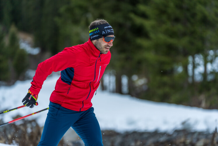 Schon beim Anziehen wird klar, bei Nordic TXS Jacke und Hose handelt es sich um zwei Teile ohne viel Schnickschnack. Die Funktion steht im Vordergrund, was ich als aktiver Sportler absolut begrüße. Das hat auch Auswirkungen auf das Gewicht, das, subjektiv empfunden, für eine Softshell sehr leicht ist. Und ein weiterer Aspekt fällt sofort auf: Das neue transtex Shell Material ist sehr flexibel und bietet nahezu optimale Bewegungsfreiheit. Das macht sich beim Langlaufen insbesondere bei schnellen Bewegungen bemerkbar. Die Arme lassen sich so ungehindert und ohne Widerstand nach hinten durchdrücken und auch den Beinen wird zum Beispiel im Anstieg eine große Schrittweite ermöglicht, ohne dass die Hose Widerstand leistet. Das ist angenehm und macht richtig Laune! Hauptfunktion der Oberbekleidung bleibt aber weiterhin der Wind- und Wetterschutz. Diese mit sehr guter Atmungsaktivität zu kombinieren war die große Herausforderung der letzten Jahre. Mit transtex Shell scheint die Lösung für dieses Problem gefunden. Das stellt das Material bei einer längeren intensiven Trainingseinheit über zwei Stunden bei null Grad Bedingungen unter Beweis. Eigentlich erwarte ich fast ein leichtes Frösteln, sobald ich richtig zu schwitzen beginne. Aber es bleibt aus. Zwar kühlt sich mein Körper durch den Schweiß etwas ab (was ja auch der Funktion des Schwitzens entspricht), aber ich friere weder bei schnellem Tempo in flachem Gelände noch in längeren Abfahrten. So trocken wie noch nie mit Außenschicht komme ich zurück am Startpunkt an und ich kann den Kleiderwechsel gemütlich angehen.
