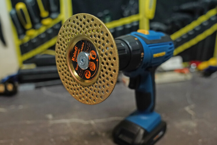 Wie oft habe ich mich früher geärgert, dass meine Skirollerspitzen immer schneller stumpf wurden, nachdem ich sie mit einer normalen Schleifmaschine versucht habe zu schärfen. Dabei glühte der Stahl regelmäßig und ich musste mit Wasser kühlen. Dass das nicht gut für das Material ist, war mir klar. Ich hatte aber keine Alternative parat. Mit der Diamantfeile war mir die Arbeit zu mühsam und ungenau. Bei einer Google-Recherche nach Diamant-Schleifscheiben stieß ich auf die Modelle von Kaindl. Die Diamant-Sichtschleifscheibe wird inklusive eines neun Millimeter Dorns geliefert, der die Montage an allen handelsüblichen Bohrmaschinen und Akku-Schraubern ermöglicht. Dieser muss nur noch mithilfe einer Schraube an der Scheibe befestigt werden und schon ist die Montage an die Bohrmaschine möglich. Wer keinen Helfer zur Verfügung hat, der sollte zudem über die Anschaffung eines Kugelgelenkhalters oder Multihalters von Kaindl nachdenken, um die Bohrmaschine in der bestmöglichen Position zu fixieren.