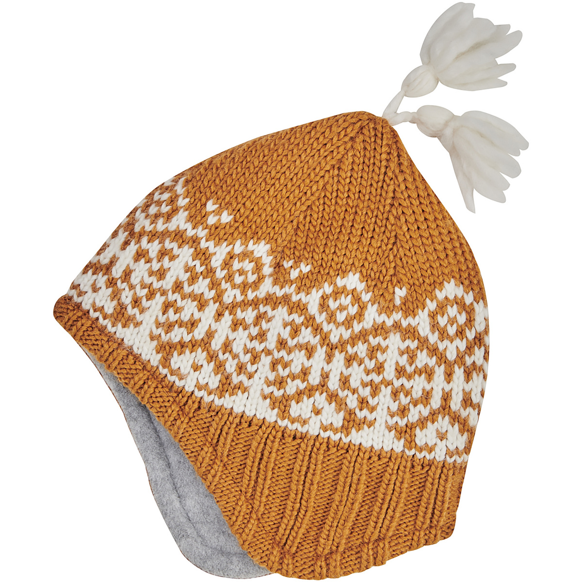 Grob gestrickte Mütze mit stylischem Norwegermuster und Ohreflaps