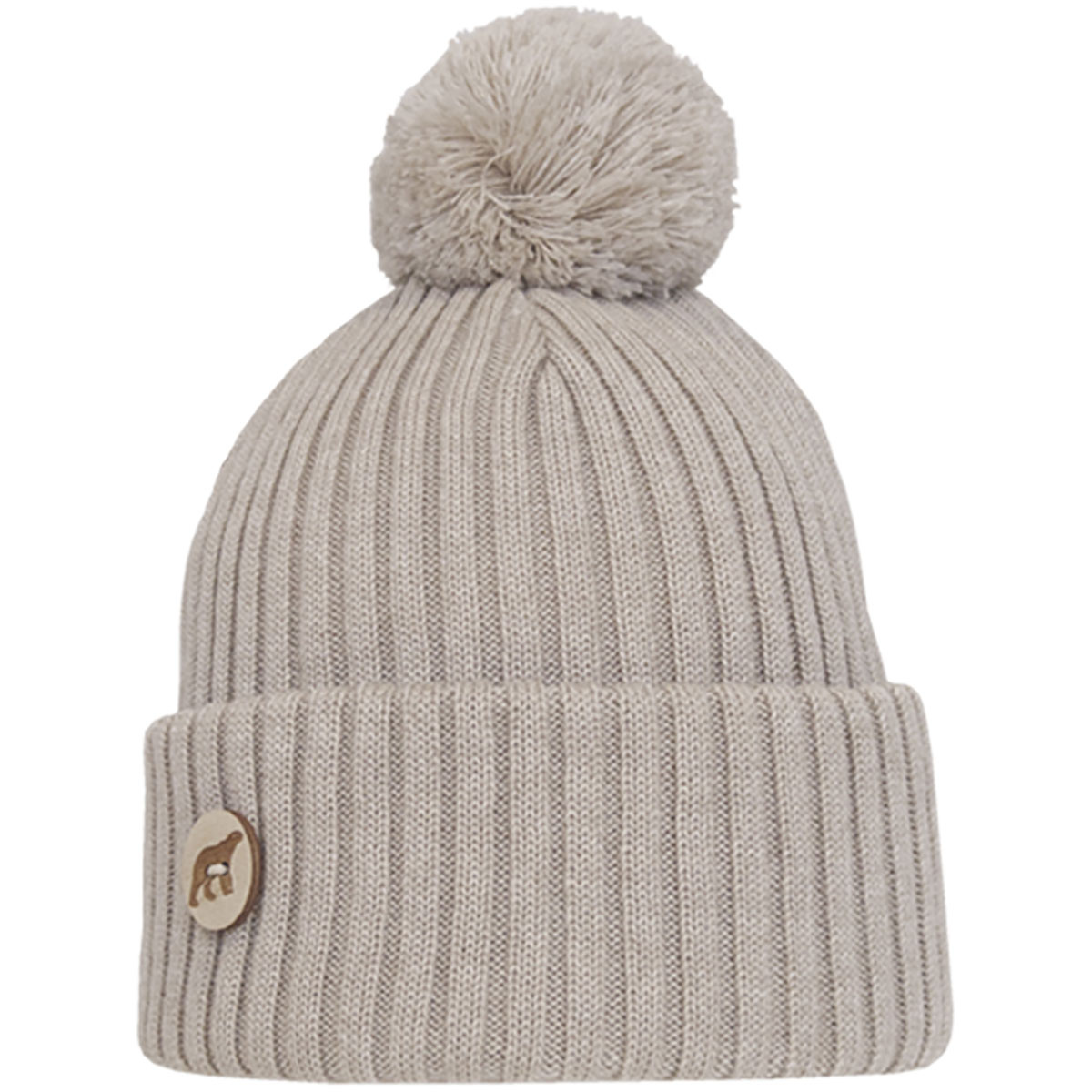 Warme, weiche Strickmütze aus bewährter Merinowolle mit Birkenholz-Detail