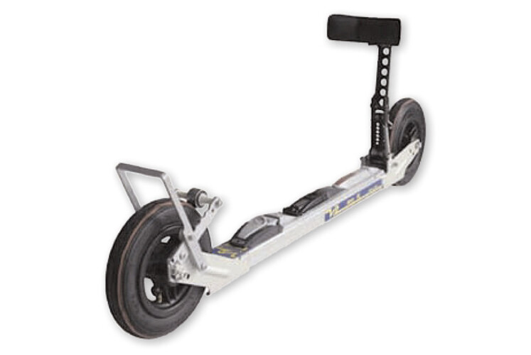 [Kategorie: Crossroller][Gewicht: 2000g][Rollenbreite: 31 mm][Rollendurchmesser: 150mm][Material Rolle: Luftbereifte Räder][Material Holm: Aluminium 7005][empf. Verkaufspreis: ab 239,00€][Besonderheiten: für Läufer bis 80kg, optional erhältlich mit 2 Bremssystemen: Wadembremse XL am Hinterrad für schnelles stoppen, Speed Bremse Atra am Vorderrad: Hebelbremse für lange Abfahrten oder für erhöhten Rollwiderstand.][Text: Crossroller mit guter Bremse aber Schwächen bei Laufruhe/Dämpfung und Abfahrtsverhalten.]
