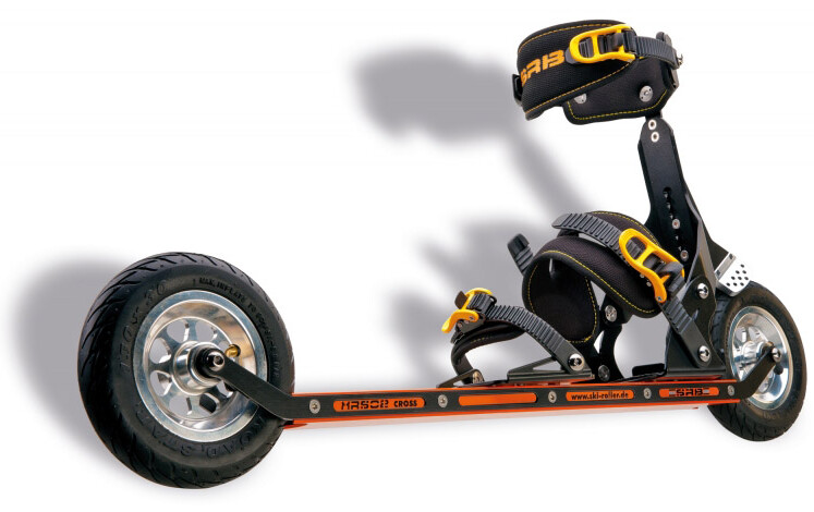 | Der schwerste Crossroller im Test, bei dem kein skiähnliches Abstoßverhalten möglich ist, da der Fuß fest an den Roller geschnallt wird. Dennoch gut bewerteter Crossroller. | |