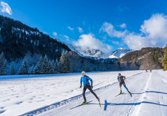 Skilanglauf ist neben Radfahren die Sportart mit dem höchsten Kalorienverbrauch. Bei regelmäßigem Training purzeln die Pfunde. Außerdem werden durch das rhythmische, schwerelose Gleiten die Gelenke geschont, der Gleichgewichtssinn geschult und die Gedanken meditativ gebündelt …